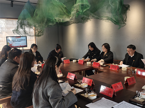 随后,理论学习环节在红色教育基地会议室举行,由外国语学院党总支组织员樊远凤同志主持。外国语学院党总支副书记汪涵涵同志首先领学《中国共产党第二十届中央委员会第四次全体会议公报》,她结合学校“十五五”规划和外国语学院实际,解读全会精神并提出具体的贯彻思路。接着,音乐学院曹宜冰同志领学了习近平总书记在广东考察时的重要讲话精神,强调以改革开放推动高质量发展。外国语学院高芬同志领学了《习近平谈治国理政》第五卷中关于“促进高质量充分就业”的相关论述,为落实立德树人根本任务、服务社会民生提供了理论指导。理论学习后,全体成员共同观看了历史文献片《永不磨灭的记忆——中国为世界反法西斯战争胜利作出决定性贡献》。