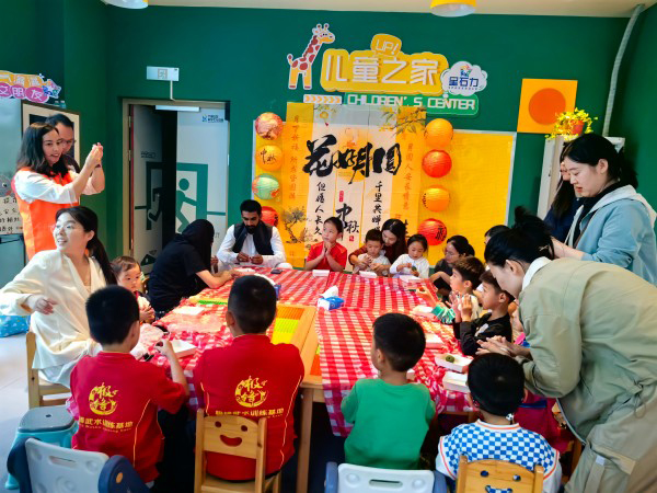 最后的冰皮月饼制作环节中,外国友人和社区孩子们在欢声笑语中亲手制作月饼。大家不仅体验了传统节日的温馨氛围,还将自己亲手制作的月饼带回家,作为独一无二的节日礼物。活动在合影留念中圆满落幕。
