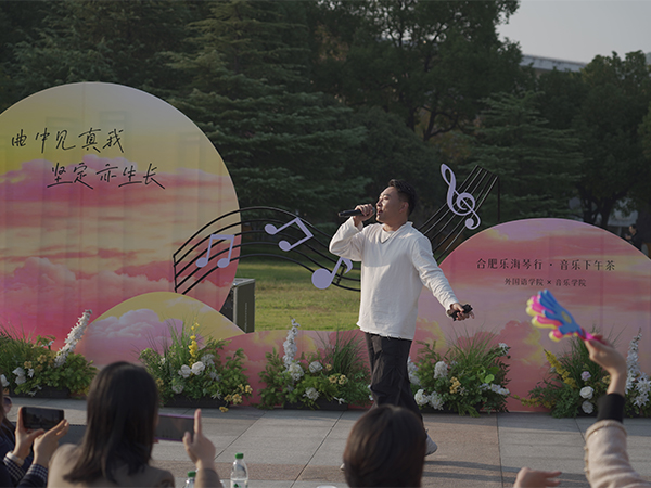 本网讯(通讯员:周晶)近日,合肥乐海琴行冠名,安徽新华学院外国语学院携手音乐学院共同举办“音乐下午茶” 活动。两院打破学科壁垒,以 “音乐 + 语言” 为核心,将专业优势无缝融合,为师生打造出一场兼具艺术美感与文化内涵的视听盛宴。活动以“自我回想,坚定生长”为主题,通过五种语言、十三首风格各异的歌曲,为师生们打造了一场轻松愉悦的周三午后音乐盛宴。