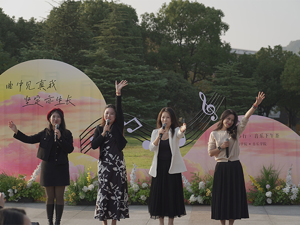 外国语学院充分发挥多语言文化优势,将英语、日语、韩语、俄语和中文巧妙融入歌曲演绎,让语言魅力与音乐感染力深度碰撞。杨文芮老师以日语演绎《Cathy》,歌声里藏着“在爱中学会爱自己”的成长感悟,细腻情感直抵人心;李彦晨老师带来西语歌曲《Que Sera, Sera》,以“语言 + 意境”的独特表达,将“行到水穷处,坐看云起时”的豁达传递给在场每一个人;陈钢玲、李文静、刘月、赵明四位老师合作的三语歌曲《雪の華》,更在秋日微风、暖阳与草坪的映衬下,将初雪般的宁静与浪漫娓娓道来,让现场沉浸在温柔氛围中。